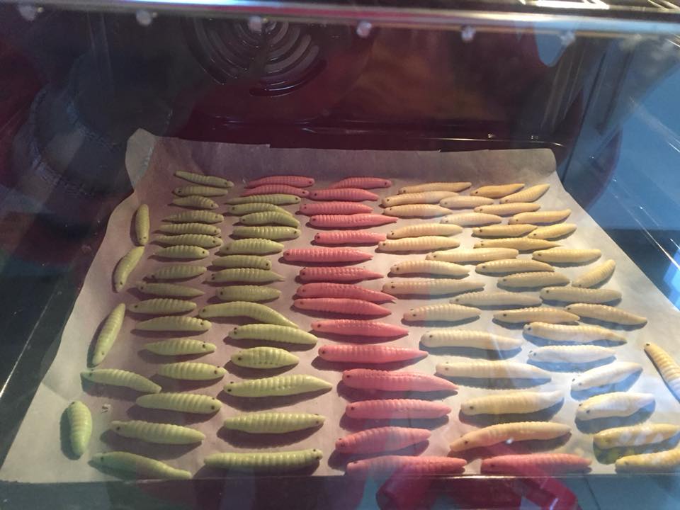 Nặn hình đuông khá dễ, bạn chỉ cần bấu một phần bột, viên cho thuôn dài, phần đầu to hơn và nhỏ dần về phía đuôi. Tiếp tục lăn bột qua chiếc lược chải tóc để tạo vân cho giống đuông dừa. Cuối cùng gắn mắt cho đuông bằng socola chip.